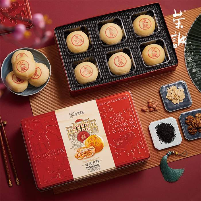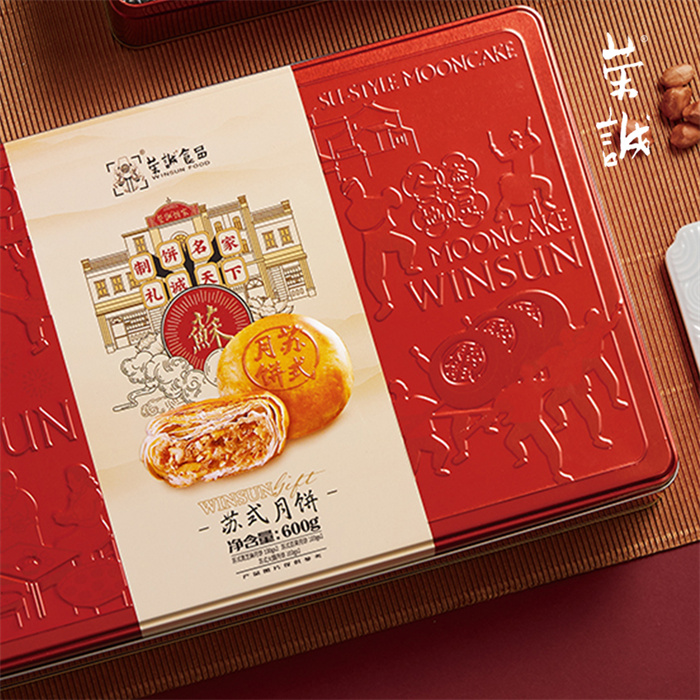 【編 碼】 YBT2114 【條形碼】 6925755560422 【尺 寸】 21.6x34.4x6.8cm 【凈含量】 600g 【規(guī) 格】 600gx8盒/箱 【內(nèi)容物】 100g蘇式黑芝麻月餅x2,100g蘇式百果月餅x2,100g蘇式火腿月餅x2
