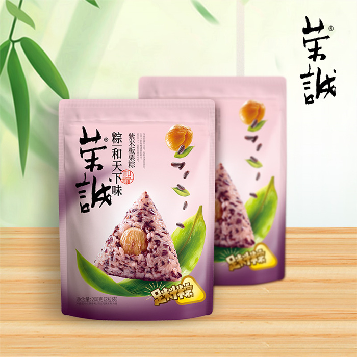 【編 碼】 RCHZ2113 【條形碼】 6925755533242 【尺 寸】 17.5x24.7cm 【凈含量】 200g 【規(guī) 格】 200gx20袋/箱 【內(nèi)容物】 100g紫米板栗粽x2