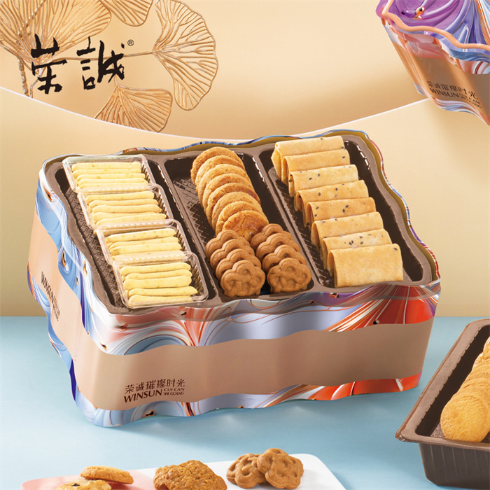 【編 碼】 CGT2503 【條形碼】 6925755535130 【尺 寸】 33x22x13cm 【凈含量】 744g 【規(guī) 格】 744gx6盒/箱 【內(nèi)容物】 30g香妃鳳梨酥x3,15g燕麥拿鐵方塊脆x6,10g香焙蔓越莓酥x12,8g原味奶油曲奇x12,10g香焙杏仁酥x8,8g迷你黑麥紅茶酥x8,13.5g澳式金泊雞蛋卷(芝麻原味)x8,12g蔥香卡拉棒x8